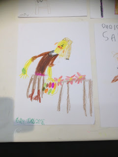 A atividade pratica de Vermeer foi de desenho livre tendo como referência a observação de um que modelo vivo, assim como nosso artista fazia. Fizemos uma espécie de teatro em que uma personagem (retratada de período barroco, com vestido marrom , lenço na cabeça e grandes brincos como uma típica modelo do artista na época ) entrou na sala se apresentou como Sra Carlota e pediu para que os pintores barrocos "as crianças" que jah estavam sentadas em posição para desenharem ( cada uma com papel, canetinhas e giz) retratassem ela, com seu cesto de frutas.